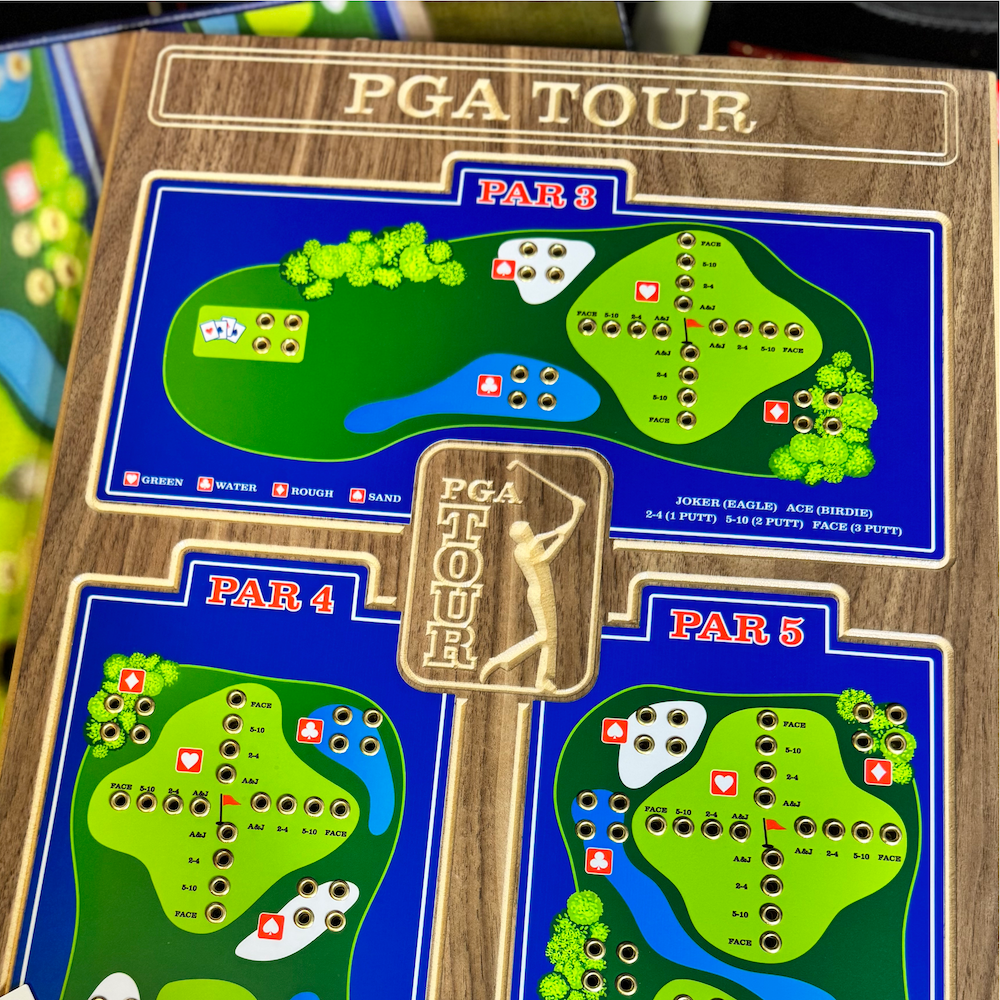 Transform your game nights with the PGA TOUR Golf Board Game, an exquisite addition to your entertainment collection. Crafted on a stunning walnut-finished game board measuring 28” x 15”, this game is as much a work of art as it is a source of endless fun. Built for beauty and longevity, it promises years of enjoyment for friends and family.